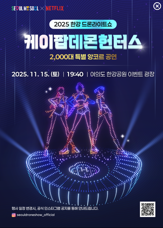 이번 주말, 드디어 한강에서 ‘케데헌 드론쇼(케이팝 데몬헌터스 in Seoul)’ 스페셜 앙코르 공연이 열린다.