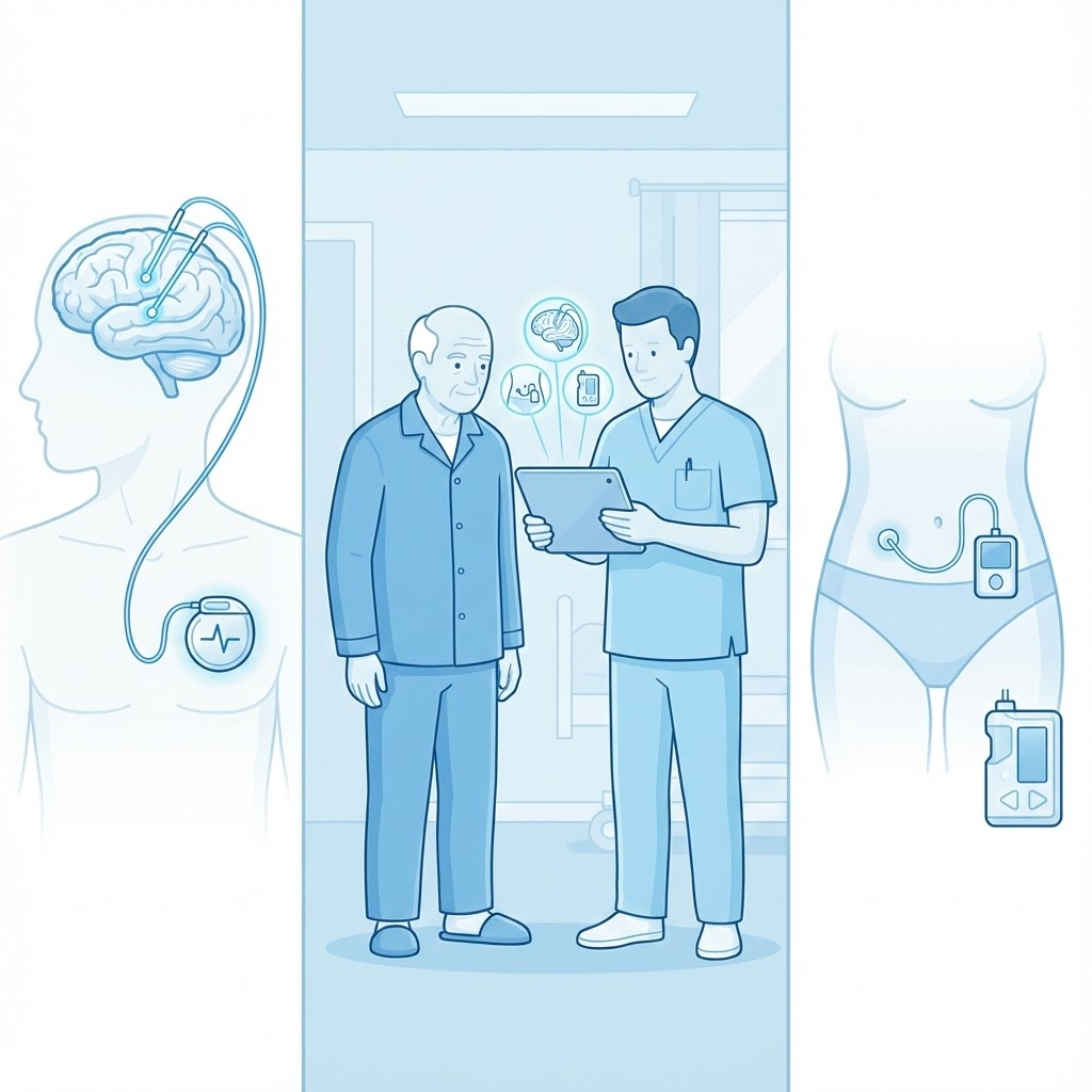 · 단점: 뇌수술 자체에 대한 부담, 전극·배터리 교체 필요, 인지·정신상태에 따라 대상 제한